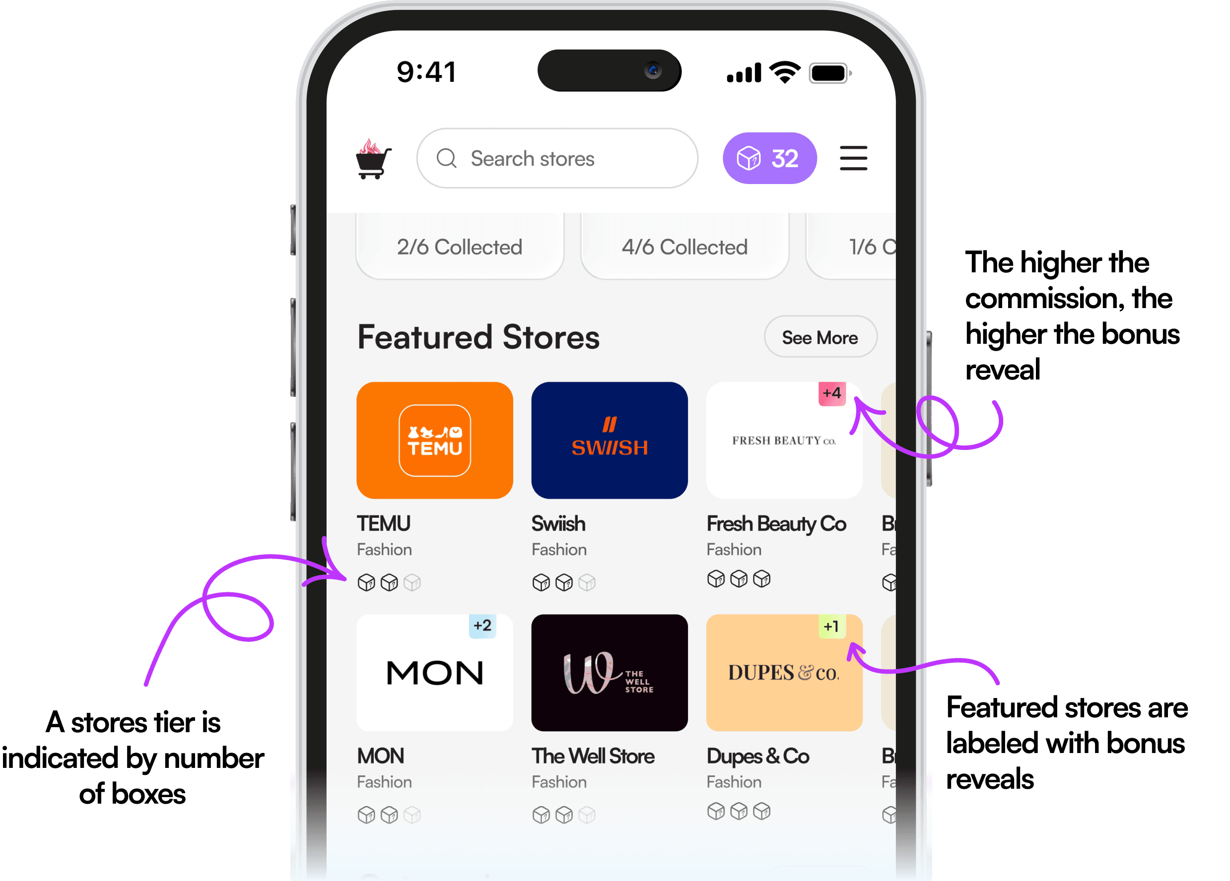 Prizecart uses the affiliate commission to fund instant rewards, unlock achievements, and progress shoppers toward set-piece collections that complete major prizes.